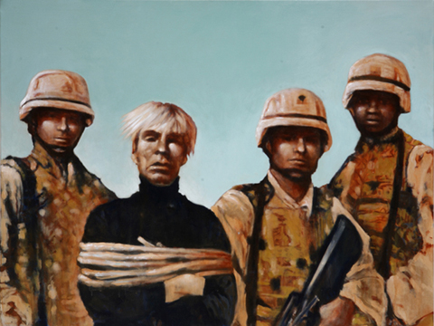The protest images are composite images of people protesting the American military actions in Iraq. I sourced images of people from all over the world protesting the “war in Iraq”. Each painting has images from 6 different countries. As in the narrative paintings I wanted to illustrate that there is a broad range of people that are speaking out in defence of basic human rights. This population spans race, class, gender and age. The global resistance to the American foreign policy has created one of the largest global communities of protest ever but it falls on deaf ears in Washington. This denial of the people’s voice runs parallel to the culling of civil rights leaders and undermines the very core values of a democratic system. In the face of this denial and culling of culture it is necessary for people to use their voices and speak out about how they are affected by increasingly inaccessible political forces.